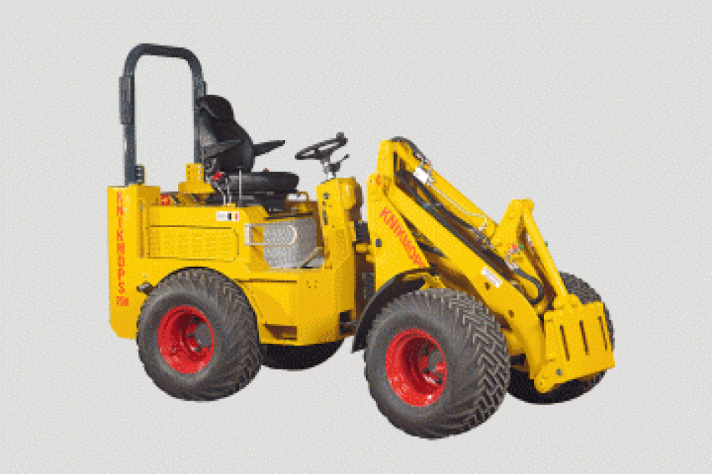 Knikmops wordt geleverd inclusief twee standaard aanbouwdelen. Zoals: puinbak, tegelriek, palletvork of een dichte bak.
